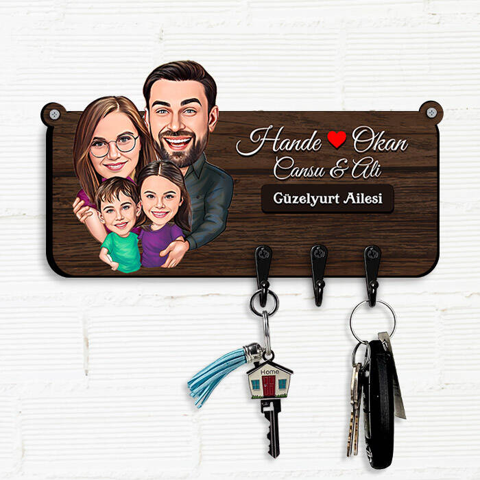 ** Ürün kaliteli ahşap malzemeden imal edilmiş olup; 26 x 17,5 cm ölçülerine sahiptir.** Anahtar askısı üzerine resim baskıları süblimasyon baskı tekniği ile uygulanmaktadır.** Bu anahtar askısını kişiye özel hale getirebilmemiz için Sepete Ekle butonu üzerindeki kişiselleştirme alanlarını doldurmanız gerekmektedir.** 2 Çocuğumuz ve Biz Karikatürlü Anahtar Askısı, zorunlu haller dışında hafta içi saat 14.00'a kadar verilecek siparişlerde aynı gün kargoya teslim edilmektedir.