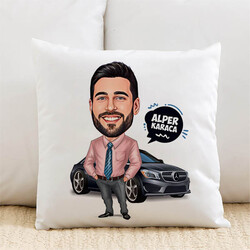 Arabasına Aşık Erkek Karikatürlü Yastık