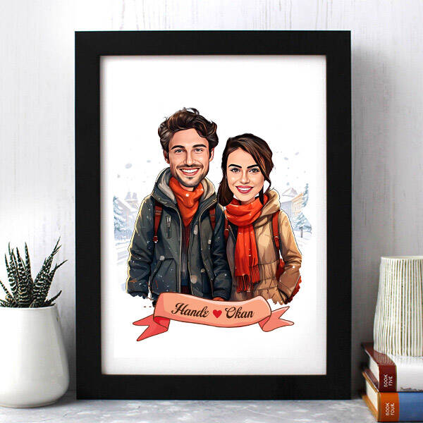 Aralık Ayında Aşk Karikatürlü Çerçeve
