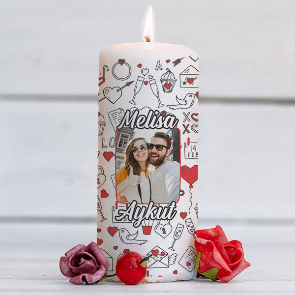 Aşıklara Özel Fotoğraf Baskılı Mum