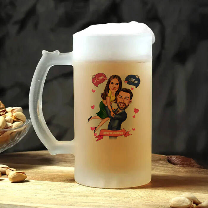 Aşk, bazen bir gülücük, bazen de ayakları yerden kesen bir duygu! Sevgilinizin kalbini fethedecek bu özel bira bardağı, romantizmi her yudumda hissettirecek. Bira ve kişisel dokunuş bir arada. İçki keyfinizi taçlandıracak en şık detaylardan biri, kişiye özel karikatürlü bira bardağınızdır. Tasarımda yer alan karikatür, tamamen sizin zevkinizi yansıtır ve her yudumda bir parça sizi anlatır.