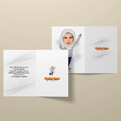 Beyaz Başörtülü Kadın Karikatürlü Tebrik Kartı