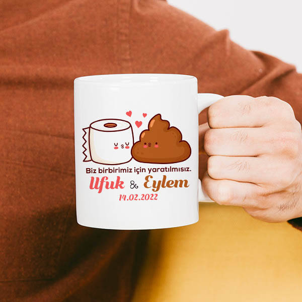 Sevdiğiniz için esprili ve birbirinizle uyumunuza dikkat çekecek bir hediye arayışındaysanız kaka ve tuvalet kağıdı tasarımlı bu kupa bardak onu çok mutlu edecektir. Kupa bardaklar sevdiğiniz ile çekindiğiniz güzel fotoğrafları içerebilir ya da ona olan duygularınızı ifade edebilir. Bikolihediye farkı ile kupa bardaklar romantik ve aşk dolu tasarımları ile sevdiğinizin kalbini yeniden kazanmanızı sağlar ve unutulmaz anılar yaşanır.