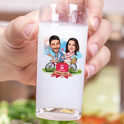 Bisikletteki Çift Karikatürlü İkili Rakı Bardağı Seti
