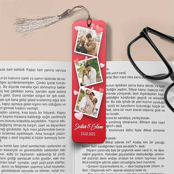 ** Ürün kişiye özel olarak hazırlanmaktadır. Siparişiniz esnasında SEPETE EKLE butonu üzerinde yer alan ürün kişiselleştirme alanlarına gerekli bilgileri yazınız.** Kitap Ayracı, 3 X 13 cm. ölçülerine sahiptir.** Ürün üzerinde püskülleri bulunmaktadır.** Canım Aşkım 3 Fotoğraflı Kitap Okuma Ayracı hafta içi saat 14.00'a kadar verilen siparişlerde aynı gün kargo teslim edilmektedir.Ürün Etiketleri