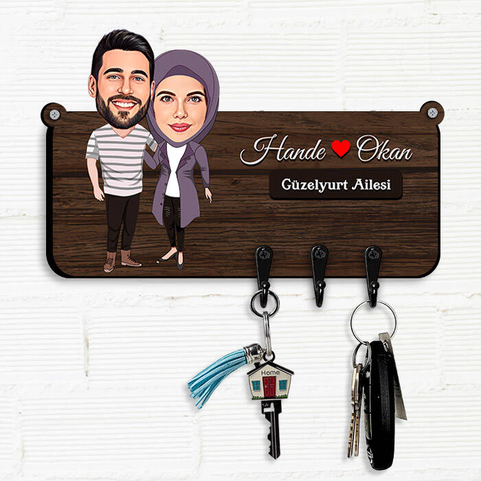 Çiçeği Burnunda Eşler Karikatürlü Anahtar Askısı