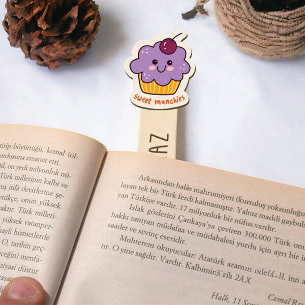 Cup Cake Simgeli İsimli Ahşap Kitap Okuma Ayracı