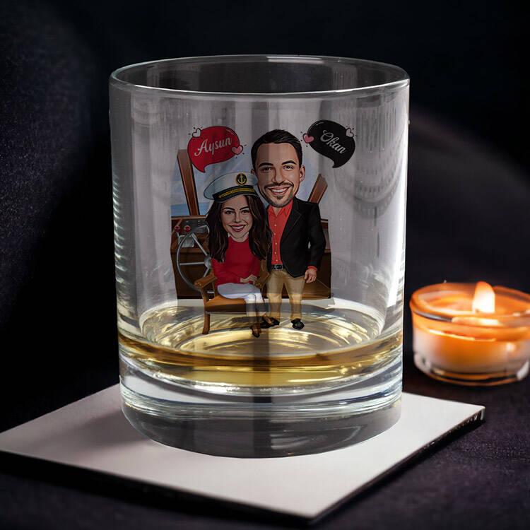 Kişisel karikatürlerle tasarlanmış deniz sever çiftler karikatürlü viski kadehi seti, viski içme deneyiminize eğlence ve şıklık katacak. Her bir bardak, özel tasarımlar ve benzersiz detaylarla doludur. Bu set, viski tutkunları için hem görsel bir şölen hem de anlamlı bir hediye alternatifi sunar.