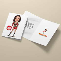 Deri Kıyafetli Kadın Karikatürlü Tebrik Kartı