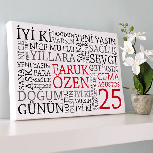Doğum günleri kişinin en özel günlerinden biridir. Dünyaya geldiği o günün her yıl sevdikleri tarafından kutlanılması kadar güzel ne olabilir. Elbette çoğu zaman hatırlamak ve kutlamak bile yeterli olabilir ama bunun yanına bir de ona bir hediye ile güzel bir anı bırakmak çok daha hoş olacaktır. Doğum Gününe Özel kanvas Tablo ile tamamen ona özel bir hediye sunmuş olacaksınız. Üzerinde onun bilgilerinin yer alacağı ve ona özel olarak hazırlanacak olan bu tablo evinin en güzel duvarını süslüyor olacak.
