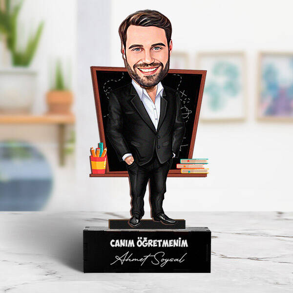 Dünyanın en yakışıklı öğretmeni karikatürlü biblo, öğretmeninizi özel hissettirecek ve ona gülümseme getirecek harika bir hediye seçeneğidir. Öğretmeninizin fotoğrafını yükleyerek kişiselleştirebileceğiniz bu biblo, öğretmenler günü veya teşekkür etmek istediğiniz herhangi bir gün için idealdir. Zarif tasarımı ve kaliteli malzemesiyle öne çıkan bu biblo, öğretmeninizin masaüstünde dikkat çekici bir yer bulur.