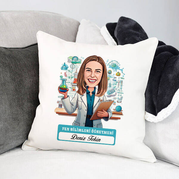 En Başarılı Kadın Fen Öğretmeni Karikatürlü Yastık