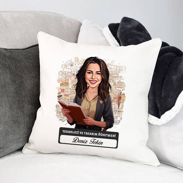 En Başarılı Kadın Teknoloji Öğretmeni Karikatürlü Yastık