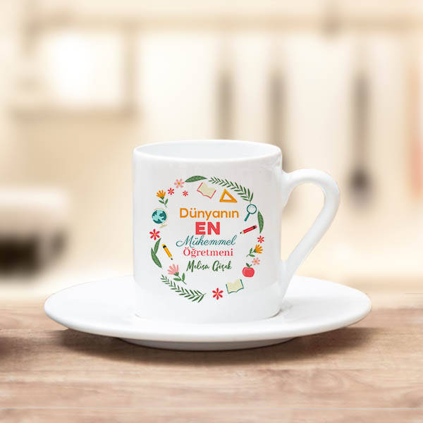 ** Fincan 5.5 cm ve fincan altlığı 11.5 cm çap ölçülerine sahip olup ürünler seramik malzemeden üretilmiştir.** Daha uzun ömürlü kullanım için elde yıkamanız tavsiye edilmektedir.** Siparişiniz halinde fincan ve fincan tabağı ile birlikte gönderimi sağlanmaktadır.** Bu Sürpriz Kahve fincanını kişiye özel hale getirebilmemiz için Sepete Ekle butonu üzerindeki kişiselleştirme alanına isim yazmanız gerekmektedir.** En Mükemmel Öğretmen Kahve Fincanı Kişiye Özel, zorunlu haller dışında hafta içi saat 14.00'a kadar verilecek siparişlerde aynı gün kargoya teslim edilmektedir.** Kahve fincanına ait Standart Düz BEYAZ, KIRMIZI ve SİYAH renk seçenekleri bulunmaktadır.Ürün Etiketleri