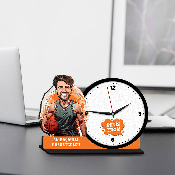 Erkek Basketbolcu Karikatürlü MDF Masa Saati
