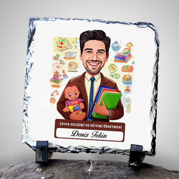 Erkek Çocuk Gelişimi Öğretmeni Temalı Karikatürlü Taş