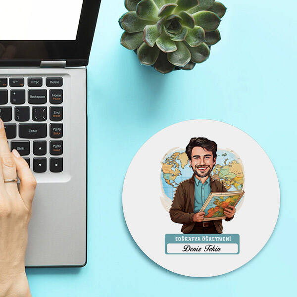 Erkek Coğrafya Öğretmeni Temalı Karikatürlü Mousepad