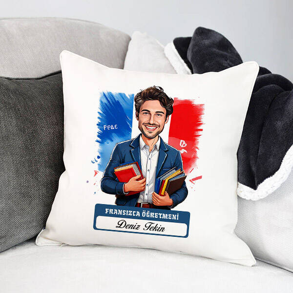 Erkek Fransızca Öğretmeni Karikatürlü Yastık