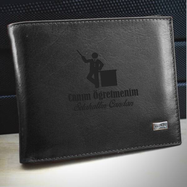 Erkek Öğretmene Özel Siyah Deri Cüzdan