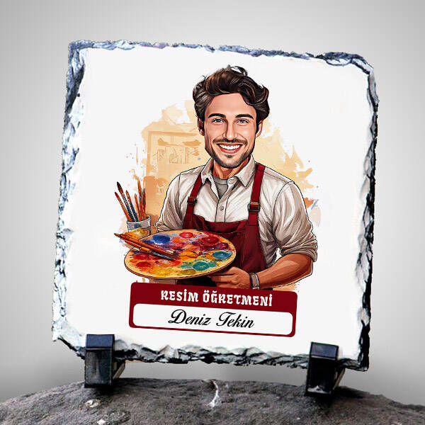 Erkek Resim Öğretmeni Temalı Karikatürlü Taş