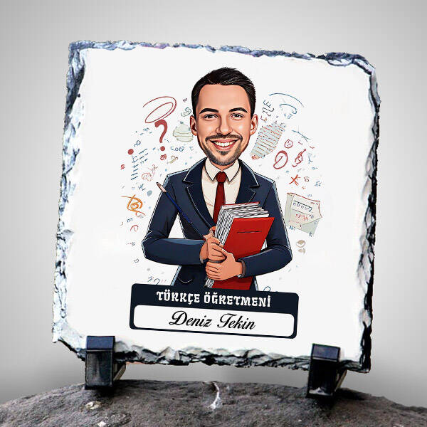 Erkek Türkçe Öğretmeni Temalı Karikatürlü Taş