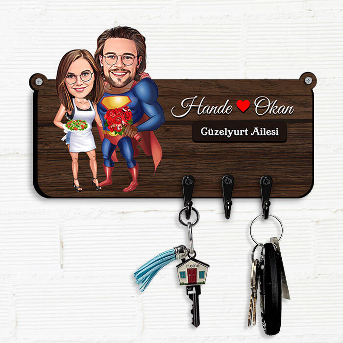 Fantastik Aşıklar Karikatürlü Anahtar Askısı