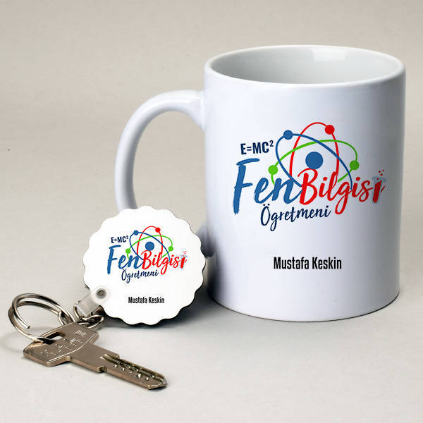 Fen Bilgisi Öğretmenine Hediye Kupa ve Anahtarlık