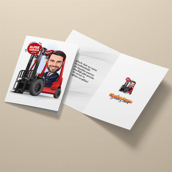 Forklift Kullanan Erkek Karikatürlü Tebrik Kartı