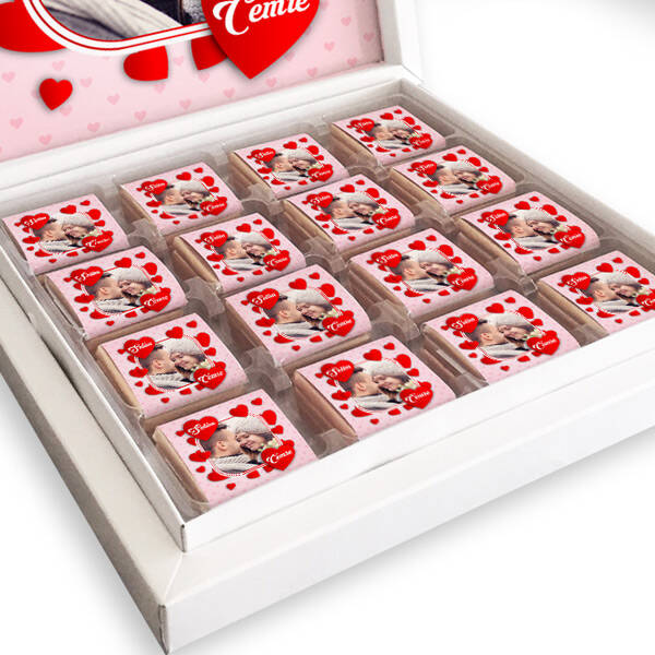 ** Ürün, beyaz renk şık ve kaliteli hediye kutusu içerisinde gönderimi sağlanmaktadır.** Hediye Kutusu ölçüleri :22 x 22 x 3,50 cm.dir.** Tercihe bağlı olarak 16'li,32'li ve 48'li adetlerden sipariş verebilirsiniz. Çikolatalar kare şeklinde sütlü çikolatadır.** Çikolatalarımız MABEL olup taptazedir. Çikolata ölçüleri 4 X 4 cm.dir.** Ürün kişiselleştirme çikolata ambalajı üzerine ve çikolata kutusunun iç yüzeyine yapılmaktadır.** Fotoğraflı Sevgililer Günü Çikolataları hafta içi saat 14.00'a kadar verilen siparişlerde Aynı Gün Kargoya teslim edilmektedir.