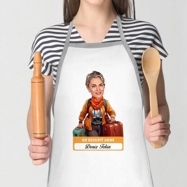 Yeni yerler keşfetmeyi seven anneler için gezmeyi seven anne karikatürlü mutfak önlüğü, anneler günü veya doğum günü hediyesi olarak mükemmel bir seçenek! Kişiselleştirilmiş karikatür tasarımıyla bu önlük, annenizin maceracı ruhunu mutfakta da yansıtacak. Bu esprili hediye, onun mutfakta geçirdiği anları daha eğlenceli hale getirecek.