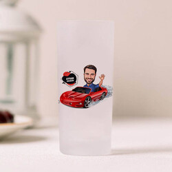 Hız Yapan Antika Arabadaki Erkek Karikatürlü Rakı Bardağı