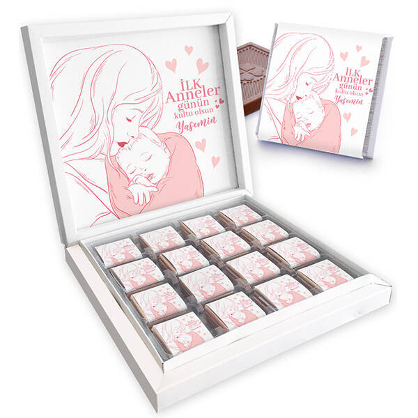 ** Ürün, beyaz renk şık ve kaliteli hediye kutusu içerisinde gönderimi sağlanmaktadır.** Hediye Kutusu ölçüleri :22 x 22 x 3,50 cm.dir.** Tercihe bağlı olarak 16'li,32'li ve 48'li adetlerden sipariş verebilirsiniz. Çikolatalar kare şeklinde sütlü çikolatadır.** Çikolatalarımız MABEL olup taptazedir. Çikolata ölçüleri 4 X 4 cm.dir.** Ürün kişiselleştirme çikolata ambalajı üzerine ve çikolata kutusunun iç yüzeyine yapılmaktadır.** İlk Anneler Günü Tasarımlı Lezzetli Çikolata hafta içi saat 14.00'a kadar verilen siparişlerde Aynı Gün Kargoya teslim edilmektedir.