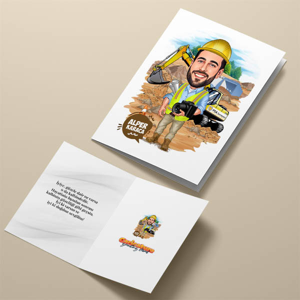 İnşaat teknikeri erkek karikatürlü tebrik kartı, inşaat sektöründe çalışan sevdiklerinizi kutlamak ve onlara destek olduğunuzu göstermek için mükemmel bir hediye alternatifi.