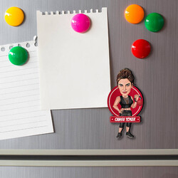 İş kadını karikatürlü buzdolabı magneti, çalışma hayatının güçlü ve başarılı kadınlarını yansıtarak buzdolabınıza profesyonel bir hava katıyor.