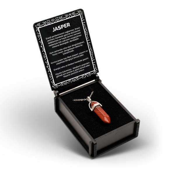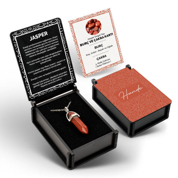 ** Orijinal Jasper Taşıdır. İsme özel ahşap kutusu içerisinde zinciri ile gönderilmektedir.** Kutusu üzerine yazılmasını istediğiniz ismi, sepete ekle butonu üzerindeki özelleştirme alanına girerek yazmanız gerekmektedir.** Kutu içerisinde Jasper Taşının özellikleri ve faydalarını anlatan ahşap bir kart bulunmaktadır.** İsme Özel Kutulu Jasper Taşı Çubuk Kolye hafta içi saat 14.00'a kadar verilecek siparişlerde aynı gün kargoya teslim edilmektedir.