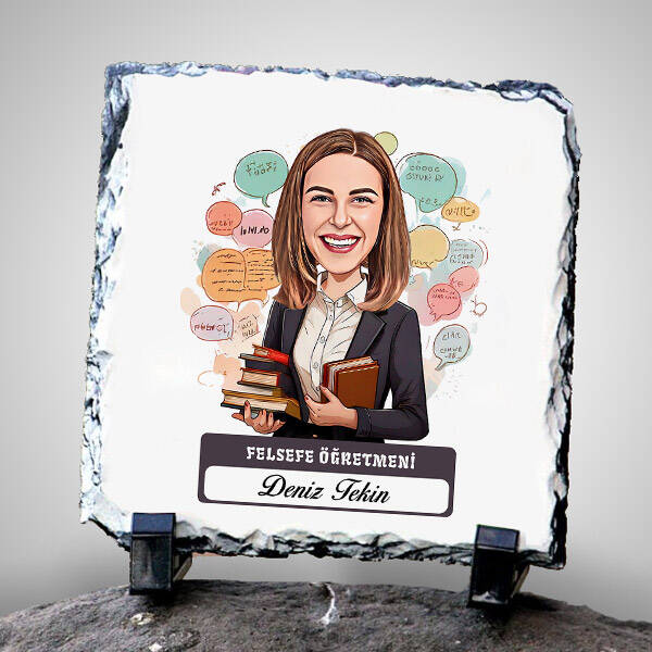Kadın Felsefe Öğretmeni Temalı Karikatürlü Taş