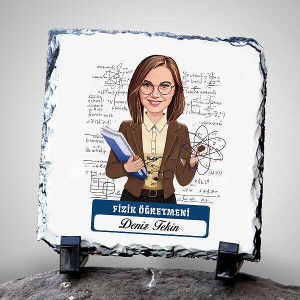 Kadın Fizik Öğretmeni Temalı Karikatürlü Taş