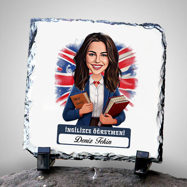 Kadın İngilizce Öğretmeni Temalı Karikatürlü Taş