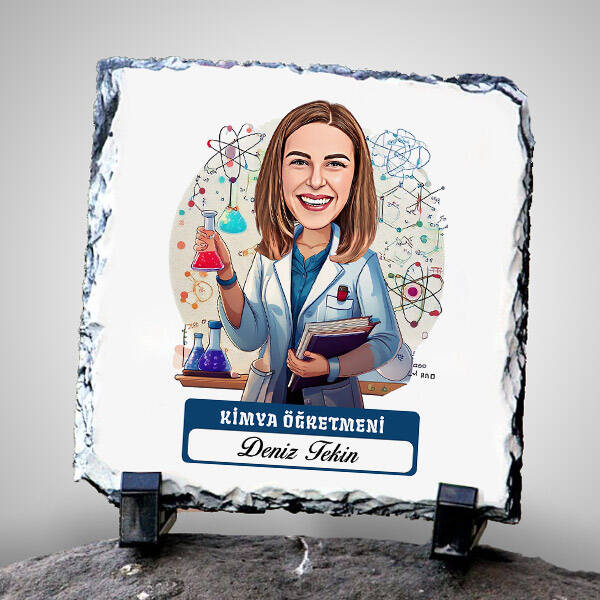 Kadın Kimya Öğretmeni Temalı Karikatürlü Taş
