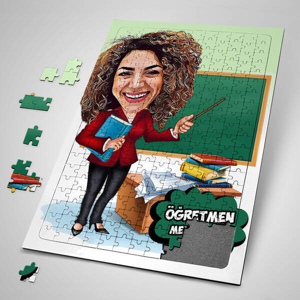 Kadın Öğretmen Karikatürlü Puzzle