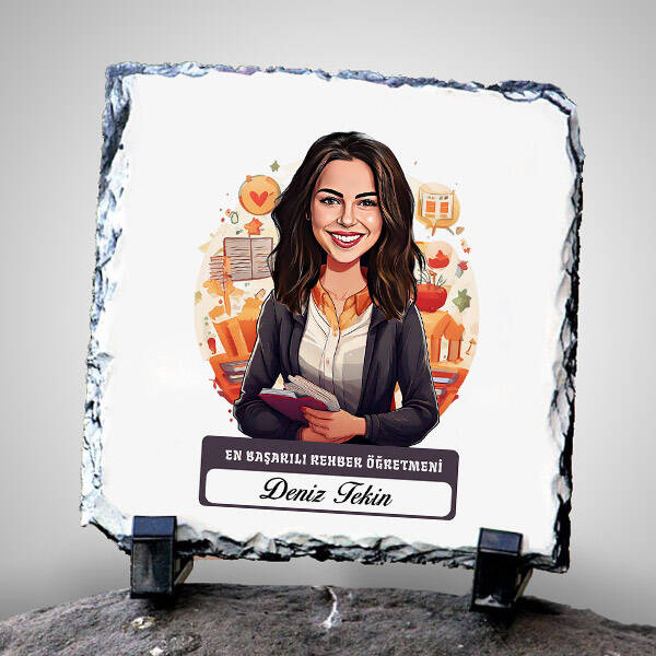 Kadın Rehber Öğretmeni Temalı Karikatürlü Taş