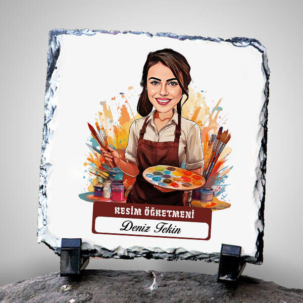 Kadın Resim Öğretmeni Temalı Karikatürlü Taş