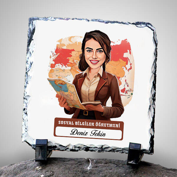 Kadın Sosyal Bilgiler Öğretmeni Temalı Karikatürlü Taş