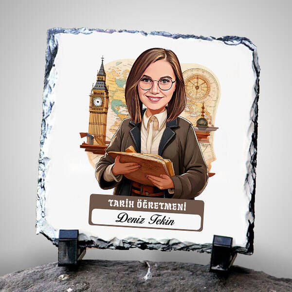 Kadın Tarih Öğretmeni Temalı Karikatürlü Taş
