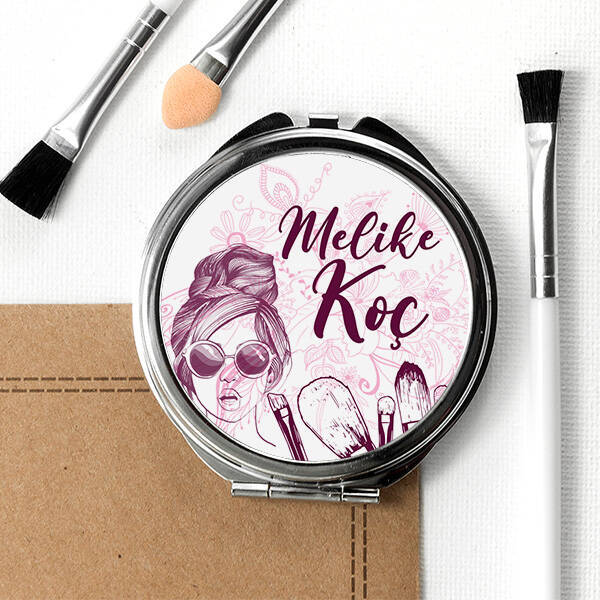 Kadınlara Özel İsim Yazılı El Makyaj Aynası