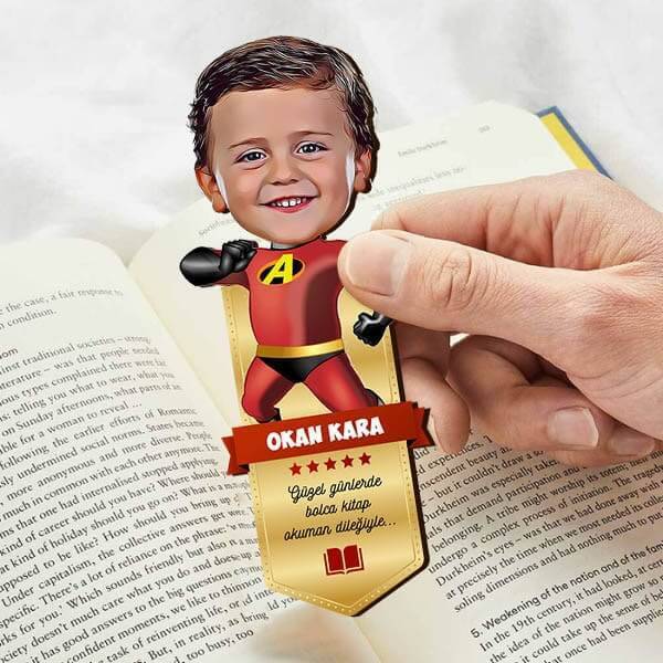 ** Ürün kişiye özel olarak hazırlanmaktadır. Siparişiniz esnasında SEPETE EKLE butonu üzerinde yer alan ürün kişiselleştirme alanlarına gerekli bilgileri yazınız.** MDF malzemeden hazırlanmıştır. Ölçüleri 4 X 13 cm ölçülerine sahiptir.** Lütfen Dikkat; karikatür çalışmasının daha kaliteli olabilmesi için yükleyeceğiniz fotoğrafın ön cepheden çekilmiş olmasına ve net olmasına önem gösteriniz.** Kahraman Çocuk Karikatürlü Kitap Okuma Ayracı hafta içi saat 14.00'a kadar verilen siparişlerde aynı gün kargo teslim edilmektedir.Ürün Etiketleri