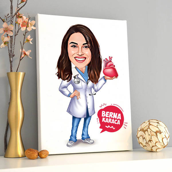 Kalp Doktoru Kadın Karikatürlü Tablo