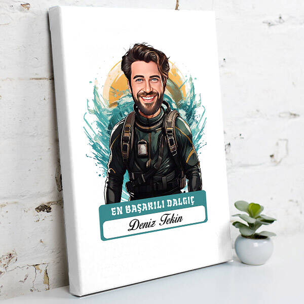 Karikatürlü En Başarılı Erkek Dalgıç Kanvas Tablo