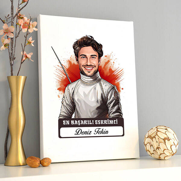 Karikatürlü En Başarılı Erkek Eskrimci Kanvas Tablo