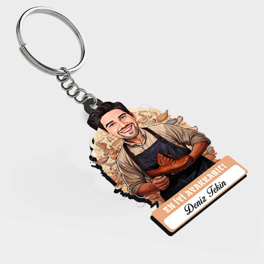Karikatürlü - Erkek Ayakkabıcı İsimli Anahtarlık